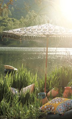 Hanging under a lush umbrella for shade: